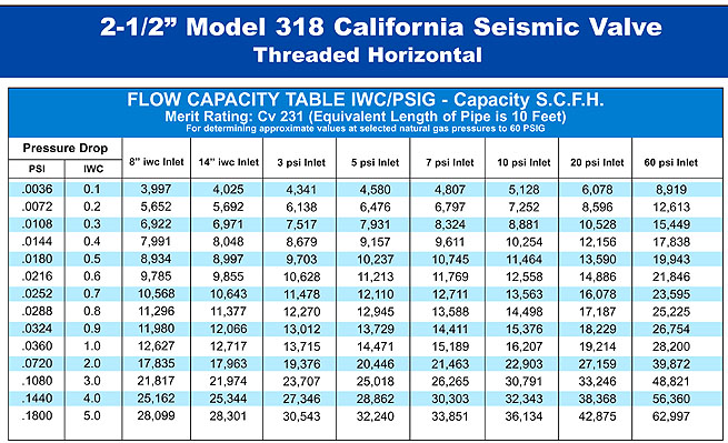 California Valves are earthquake sensitive gas shut-off valves. They are intended to close in the event of an earthquake to prevent gas flow into a structure where earthquake damage may have occurred. The valve reduces the potential for fire or explosion due to the release of natural gas into a structure where gas lines, gas fixtures, or gas appliances. California Valves do not use any source of internal or external electrical power. They are designed to remain closed until manually reset. The valves are intended to be mounted in the gas line upstream or downstream of the gas-line pressure regulator and gas meter outside the structure. These valves do not replace the manual upstream shut-off valves provided in the gas service line. |